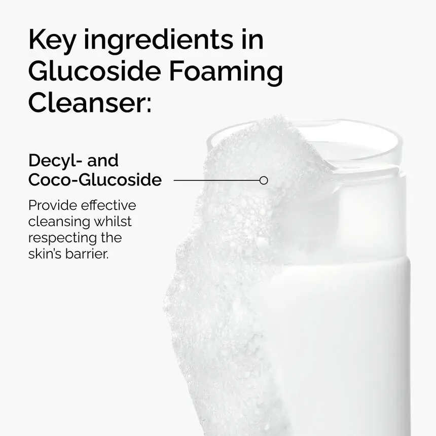The Glucoside Foaming Cleanser is a gel-like foaming cleanser that effectively helps remove dirt and environmental impurities. This formulation helps maintain the skin’s moisture barrier, while also improving the look of skin clarity, skin texture, skin radiance, and suppleness with continued use. Formulated, and clinically proven, to be suitable for babies, Glucoside Foaming Cleanser respects the barrier of even the most delicate skin.